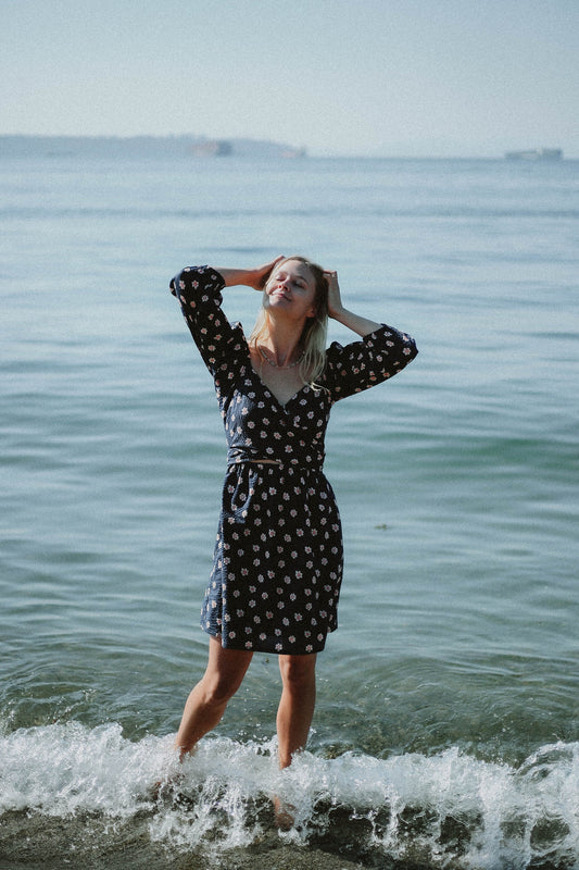 Sparrow & Lilly Navy Floral Long Sleeve Wrap Dress