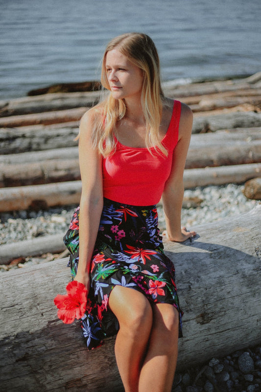 Sparrow & Lilly Aloha Floral long flounce ruffle wrap skirt