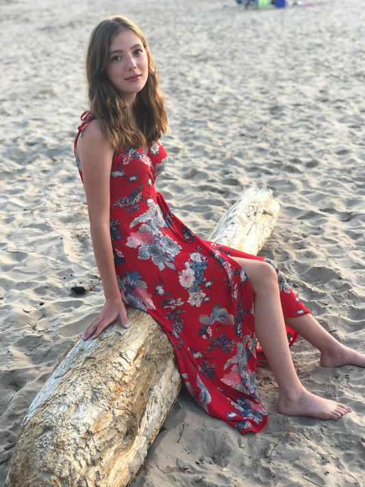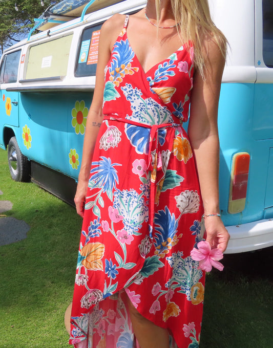 Sparrow & Lilly The Aloha Red Wrap Maxi Dress