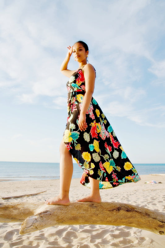 Sparrow & Lilly The Aloha Black Floral Wrap Maxi Dress
